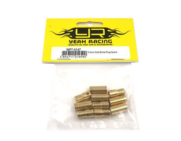 WPT-0147 Yeah Racing 6.5mm Gold Bullet Plug 5 Pairs