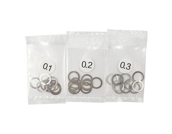 Stainless steel spacer set for fine tuning the fitment of different parts, be it steering or even diff spacing to ensure a longer lasting drivetrain! Increments in 0.1mm, which allows you to get perfect play shimmed out.
