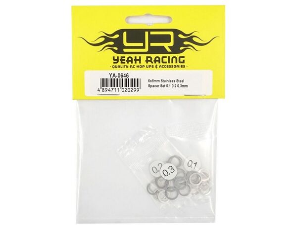 YA-0646 Yeah Racing 6x8mm Stainless Steel Spacer Set 0.1 0.2 0.3mm (30)