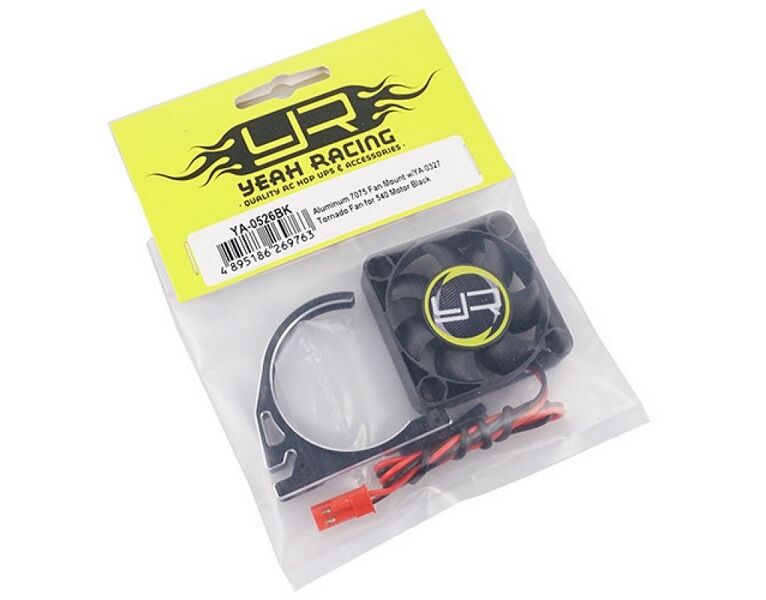 YA-0526BK Yeah Racing Aluminum 7075 Fan Mount w/ YA-0327 40mm Fan for 540 Motor Black