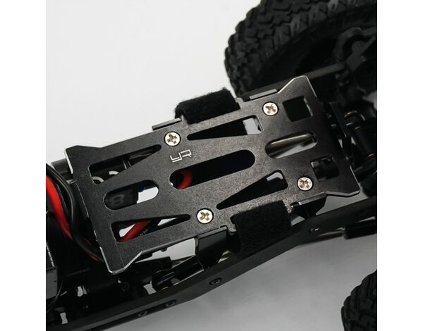 Aluminum battery tray for Axial's SCX24, included are aluminum mounts as well. Greatly increasing the durability of your micro rig!