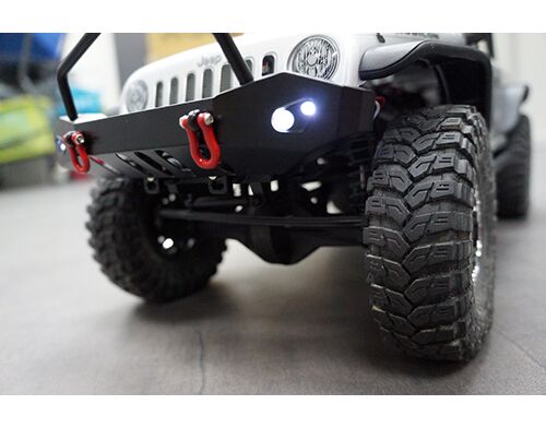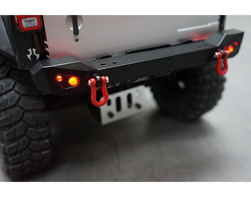 This is Yeah Racing Front Rear Bumper w/ Heavy Duty Shackle Set For Axial SCX10. This product can fulfill your need for ever more realistic accessories with more passion for detail. The Bumper feature mounting points for four LED lights (Included) front and rear , included also are two shackles for each bumper. So it gives you plenty of winching options. The front bumper comes with width adjustment to suit all widths of SCX front bumper widths.