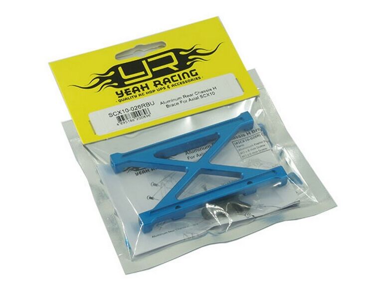 This is Yeah Racing Rear Chassis H Brace for Axial SCX10 with strong, lightweight and stylish Aluminum. It can increase the strength of the chassis and prevent it from twisting on tough trails of your SCX10 with this product.