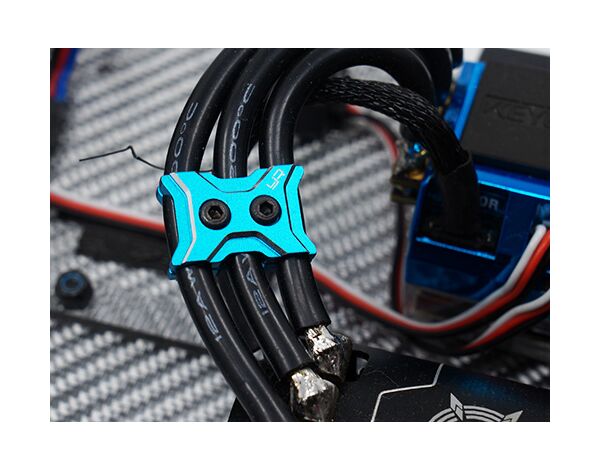 Wire Clamp from Yeah Racing for keeping the wires on your car neat and tidy, this wire clamp will be able to fit wire sizes ranging from 12 to 14 gauge. Features three slots for motor wires and you can use two if you wish to use this item for organizing battery connection wires! The two halves are secured together with two cap 1.5mm Cap screws which keep this clamp secure whilst keeping a low profile!