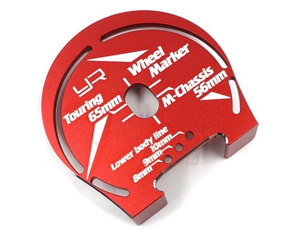 Simple yet effective tool for marking wheel wells for easy cutting out, besides wheel wells you can also mark the height of how far it is off the ground. Which is sometimes required sometimes racing on carpet tracks and to avoid your body scraping on the floor and affecting performance! Besides for touring cars, there is an marked section in the center for marking mini bodies as well!