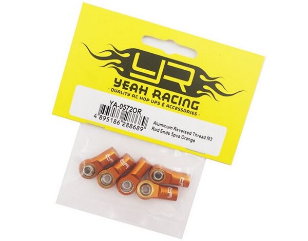 YA-0572OR Yeah Racing Aluminum Reversed Thread M3 Rod Ends 5pcs Orange