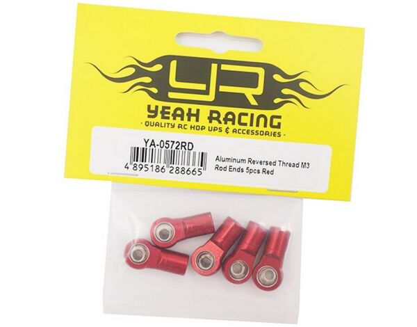 YA-0572RD Yeah Racing Aluminum Reversed Thread M3 Rod Ends 5pcs Red