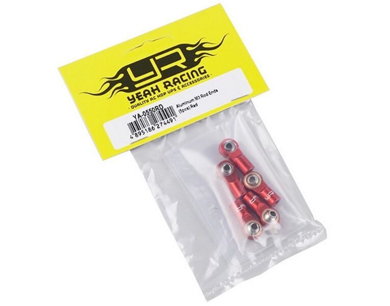 YA-0550RD Yeah Racing Aluminum M3 Rod Ends (5pcs) Red