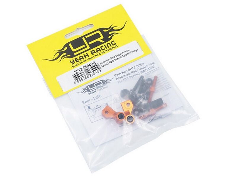 SPT2-D004OR Yeah Racing Aluminum Rear Upper Arm for Sprint 2 RWD Drift SPT2-S04 Orange