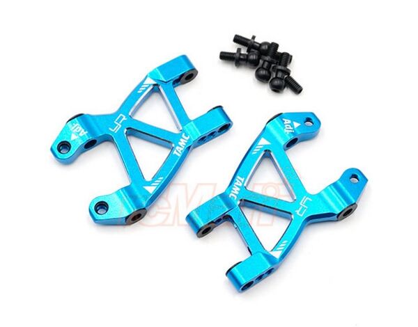 Aluminum suspension arms for Tamiya's M07, features a o-ring secured droop screw! Added strength over plastic arms will let you get more out of your tires whilst increasing stability!