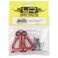 Aluminum upgrade parts for the essential parts of your Tamiya TT-01! Upgrade parts to aluminum to increase accuracy entering corners and reduce slop with the plastic insert pre-installed suspension parts! O-ring installed drop screw holes which eliminates the old problem of loosening droop screws