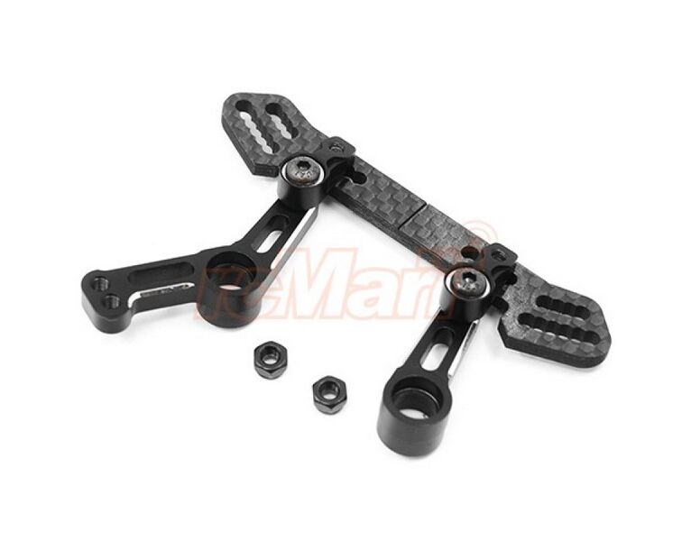 A mixture of carbon fibre and aluminum steering rack upgrade! Carbon fibre provides the horizontal rugidness required without the weight of aluminum. Dual bearing supported steering rack ensures smooth and precise steering input.