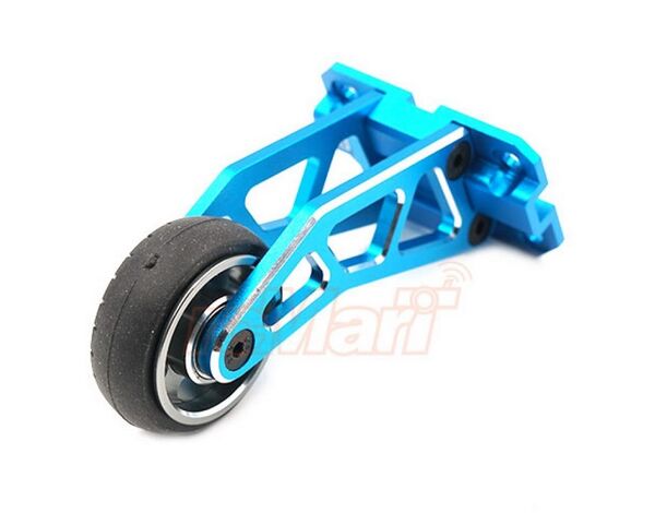 Aluminum adjustable wheelie bar for Tamiya's WR02 and GF01! Flip the wheel mount vertically to either limit the amount of "wheelie" you can pop or have it in the upwards position to be able to pull large wheelies! Two different configurations designed for either racing or backyard bashing!