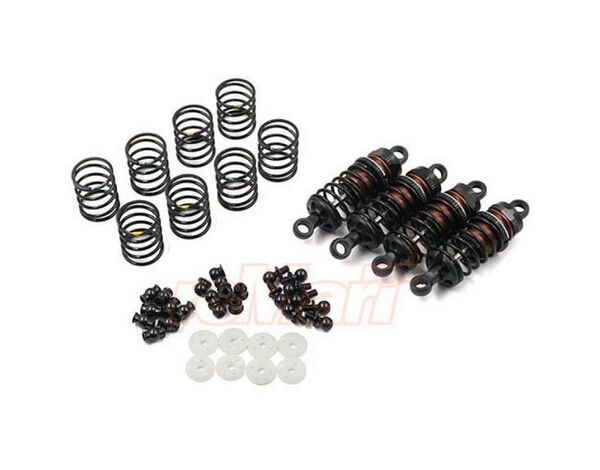 Big Bore Go! Purchase this set of big bore shocks, add oil and off you go! Includes two different types of mounting pillow ball studs for different types of cars! Included are different springs for you to fine tune your ride so you don't have to go looking for different springs after purchasing our set of shocks! If you really want to get serious with tuning, there are different holes of pistons included so you can adjust the how the shock reacts to the shock oil.