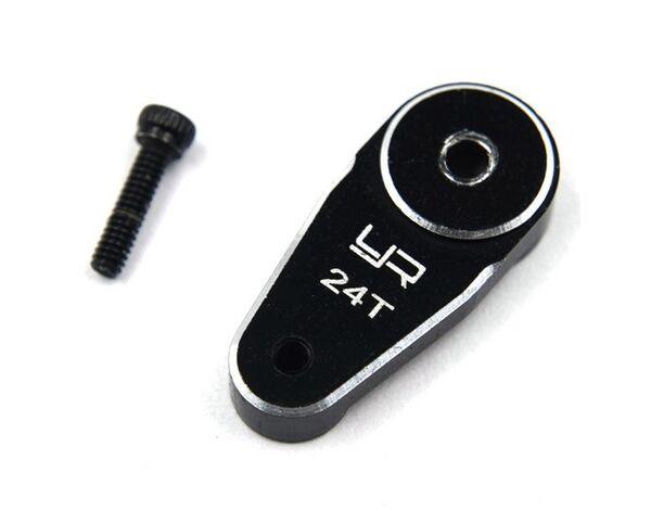 Aluminum servo horn designed for use with the SCX24. Allowing you to get max steering throw without much work.