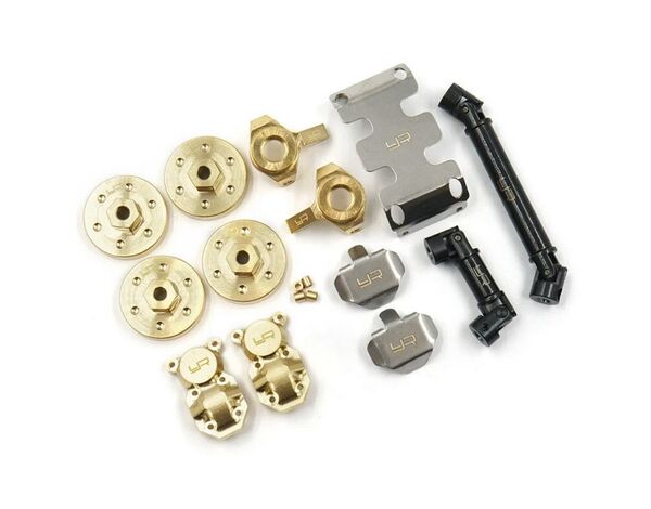 A combination of all our Brass and Steel upgrades for Axial's SCX24, meaning you can upgrade everything in one go! Brass adding weight which lets you extract more grip from the tires and the steel bits increases durability of the little rig!