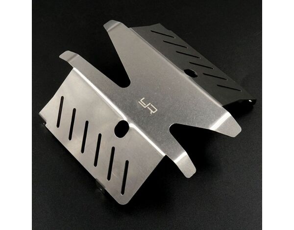 Stainless skid plate to help protect your transfer gearbox at the center of your chassis! Made from stainless steel so you can go trucking through water without worrying about the part rusting.