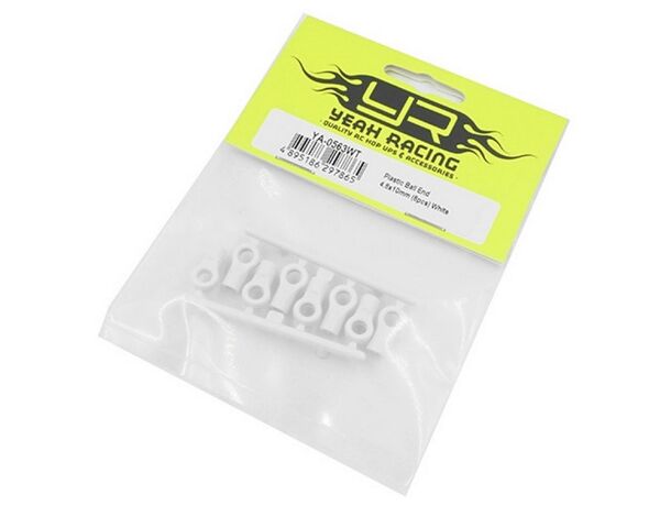YA-0563WT Yeah Racing Plastic Ball End 4.8x10mm 8pcs White