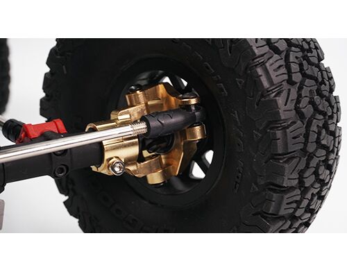 Brass upgrade combo for your Axial SCX10 II, upgrade to these parts to get more grip out of your tires! Brass also means sturdier than the original plastic parts. Comes with all required mounting hardware required to install this combo onto your truck!