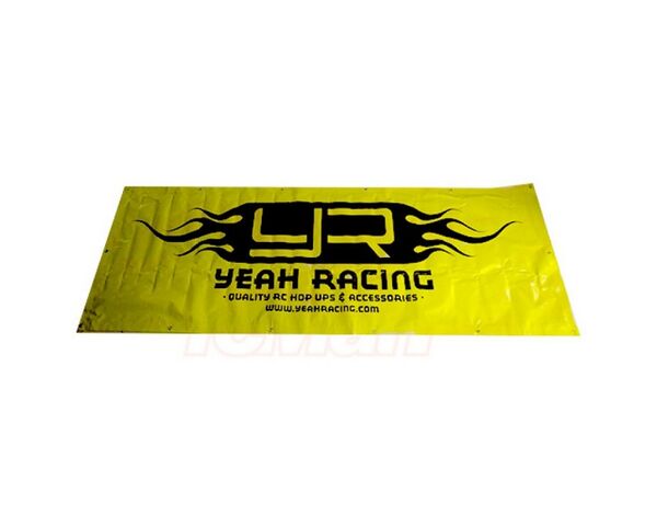 Show your support for Yeah Racing by hanging one or more of this banner around your track! Water resistant and quick drying Satin material. Multiple mounting rings built in to secure this banner to the side of your track.