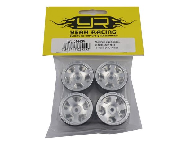 WL-0144SV Yeah Racing Aluminum CNC 5 Spoke Beadlock Rim 4pcs For Axial SCX24 Silver
