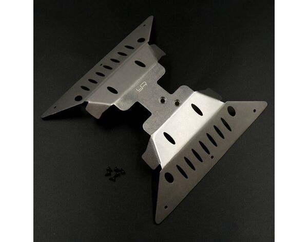 Stainless steel protector for Axial's Capra! Better protect your rig from harsh landings and/or hitting rocks whilst crawling, protecting the transmission case and/or motor mount ensuring your rig survives abuse that you throw it's way!