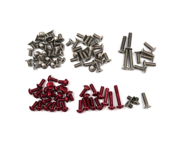 Titanium and aluminum screw set for Xpress's Execute XQ2S, effectively bringing the weight of your car down to fit the low weight requirements for touring car classes. The red anodized 7075 screws makes your car stand out as well!
