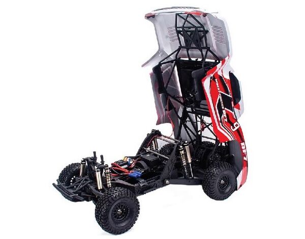 Der Desert Fighter ist speziell für den Outdoor-Einsatz optimiert. Das zeigt sich an den einzelnen Komponenten, die ihn robust und gleichzeitig agil machen. So bestehen die Antriebswellen aus extrem festem, vollständig bearbeitetem Stahl. Hinzu kommen acht Aluminium-Stoßdämpfer mit extra langem Hub und progressiven Federn sowie ein Jumbo-Servo mit satten 35 kg/cm Stellkraft. Die neu gestaltete Dreischicht-Aluminium-Chassis-Konstruktion sorgt für einen niedrigen Schwerpunkt und hervorragende Fahreigenschaften. Und für Fahrten bei Nacht ist der Desert Fighter natürlich ebenfalls mit einer LED-Lichtleiste und LED-Rücklichtern ausgestattet.