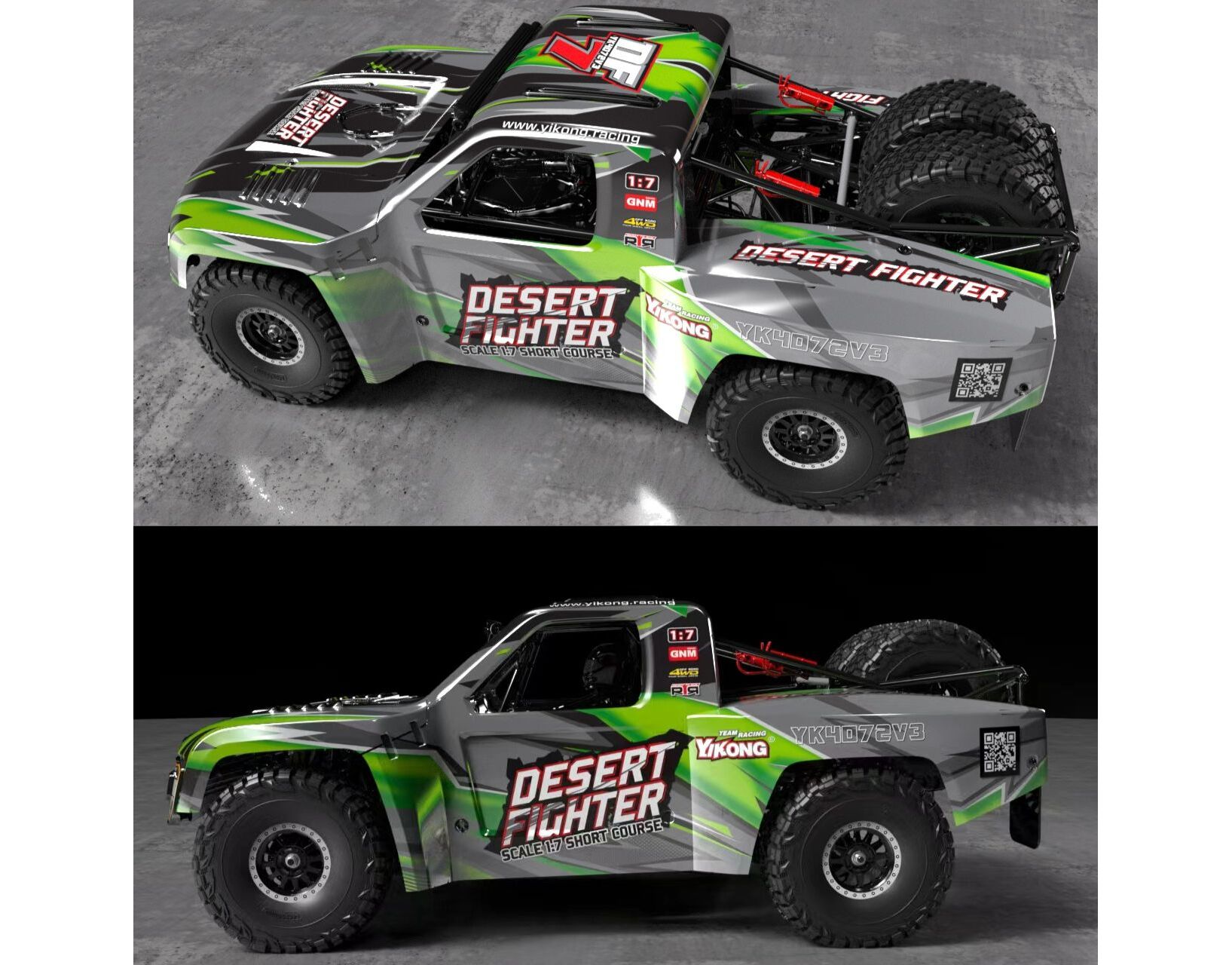 YK4072A Yikong DF7 V3 Desertfighter 1/7 Short Course Truck Grün - 3-6S - EC5 Stecker - Ohne Akku und Ladegerät