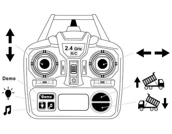 Mit der Fähigkeit, vorwärts und rückwärts zu fahren sowie rechts und links zu biegen, können Sie den LKW präzise um verschiedene Gelände herum manövrieren und Ihre Fahrkünste herausfordern. Die Last des Lkw kann einfach über die Fernbedienung betrieben werden, so dass Sie sie bei Bedarf anheben und senken können. Und mit Licht und Ton, das in das Fahrzeug integriert ist, wird das Spiel noch realistischer und lustiger.