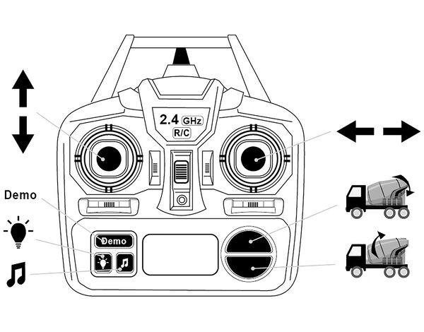 Mit der Fähigkeit, vorwärts und rückwärts zu fahren sowie rechts und links zu biegen, können Sie den LKW präzise um verschiedene Gelände herum manövrieren und Ihre Fahrkünste herausfordern. Die Walze kann um 360 Grad gedreht und einfach über die Fernbedienung bedient werden. Und mit Licht und Ton, das in das Auto integriert ist, wird das Spiel noch realistischer und lustiger.